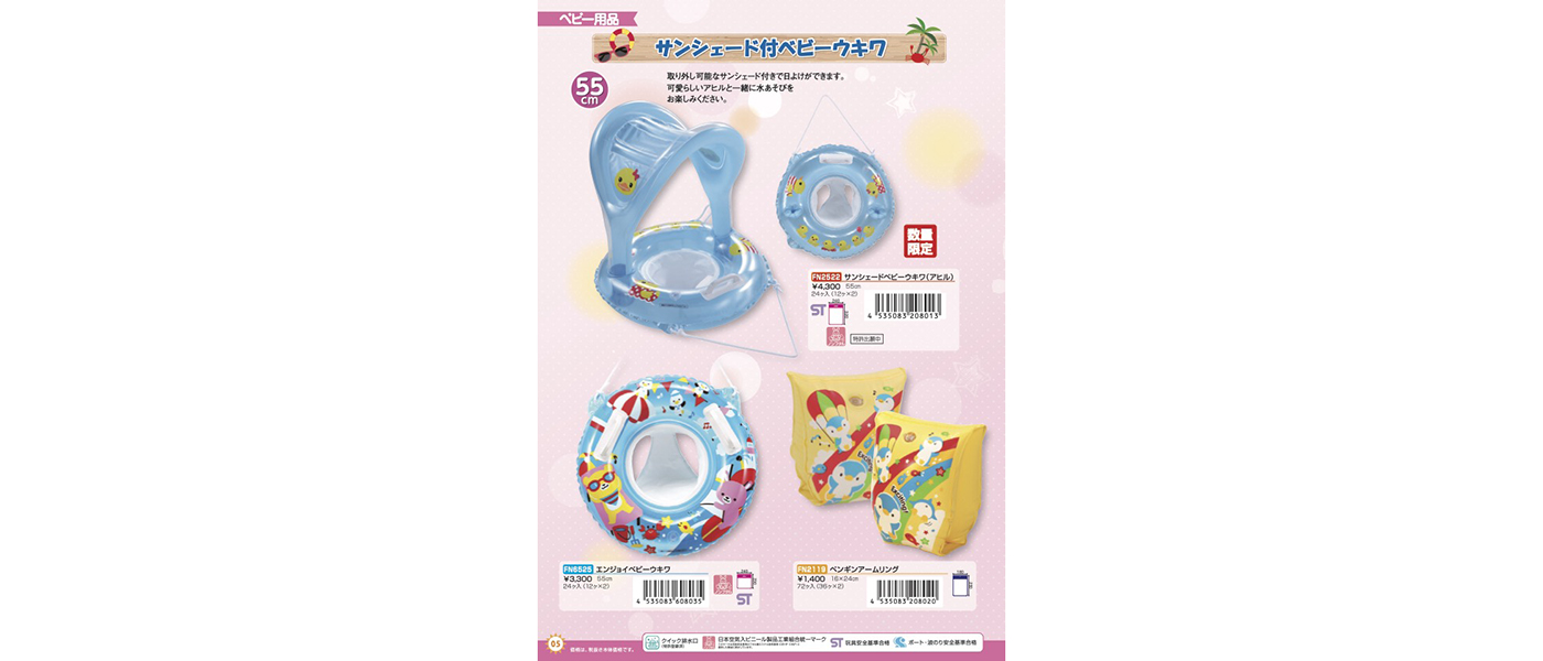 安全面について注意深く作られた製品。玩具安全基準に合格した、空気入れやビニールおもちゃに付いている合格マークです。