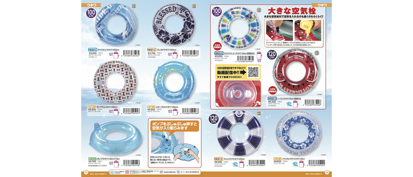 120cmウキワは大型の空気入れボートや、大型のサーフ・フロート・浮き輪などに付いているボート・波のり安全基準に合格しています。